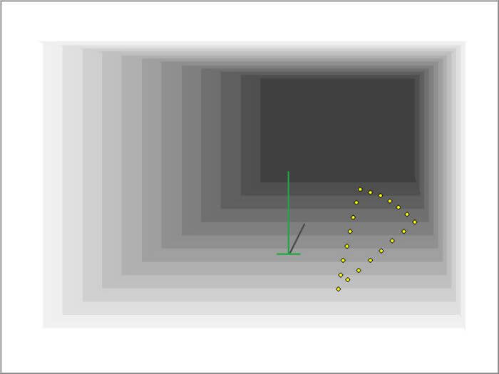 Die Aufgabe besteht darin, ein in einem dreidimensionalen Raum platziertes, gelbes Kreissegment in eine gewünschte Position zu bringen. Das auf der Spitze stehende Kreissegment beginnt selbstständig unvorhersehbare Bewegungen auszuführen. Die Testperson hat die Aufgabe, mittels Steuerknüppel bzw. Fußpedale gegenzusteuern, sodass das Kreissegment aufrecht stehend die gewünschte Position einnimmt.